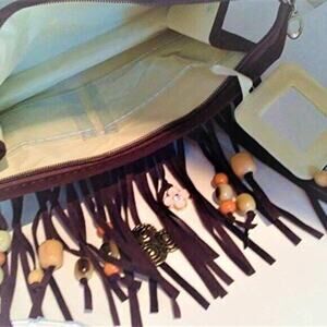 CROSSBODY BROWN Fringed Purse BOHEMIAN LUXE Bag w Chain Charm 2 Enamel Flowers NEW!! Luxury Boho Coastal Cowgirl Gypsy Festival Dressy Dress-up Prom Wedding Going out Date Night Exotic Intricate Details full of fancy beading Stylish