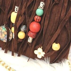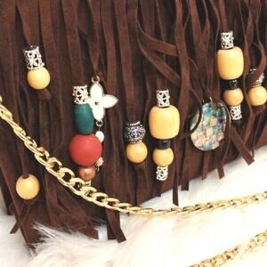 CROSSBODY BROWN Fringed Purse BOHEMIAN Luxury Gold Chain Charms Flower Gypsy NEW