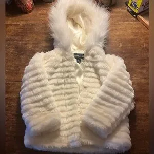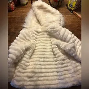 Rothschild size 4T toddler cream faux fur hooded jacket zippered small stain shown in pic 4T price reflects stain