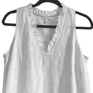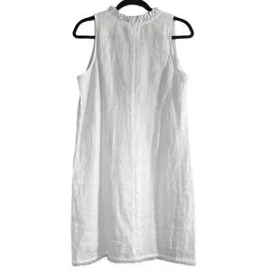 Time to unwind in paradise this linen shift dress with ruffled v neckline , hand pockets and fringe hem and fully lining in natural. This Two Palms Ruffle Shift Dress by Tommy Bahama features solid pigment garment dyed, two palms linen weave with enzyme wash.