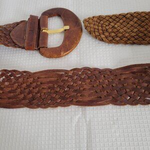 Furla Women's Size L Belt Adjustable Wide Woven Made In Italy Genuine Leather Brown