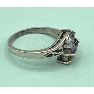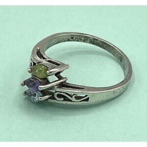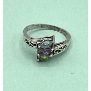 Vintage 925 Silver Three Stone Marquis Ring Peridot Topaz Amethyst Size 9.75