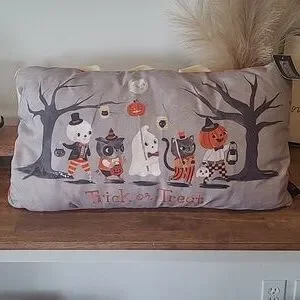New with tags. Cynthia Rowley Curious New York light up down alternative pillow. Approximately 20" long. Skeleton, owl, ghost, cat and pumpkin. Says trick or treat. Halloween pillow.