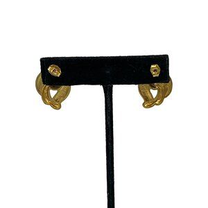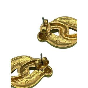 These vintage pierced earrings feature a knot design with enamel and gold-plating. They add an elegant, timeless touch to any ensemble.
