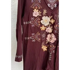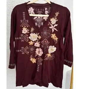 NWT Anthropology by Caite Tees Women's Burgundy Embroidered Shirt - Size Small