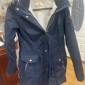 Hollister Faux Fur Lined Cozy Parka NAVY Recycled Fill - used