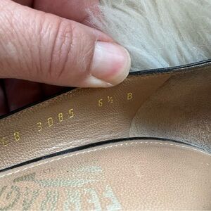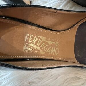 Salvatore Ferragamo Black Patent Leather Gold Logo Heels Women’s Size 6.5B