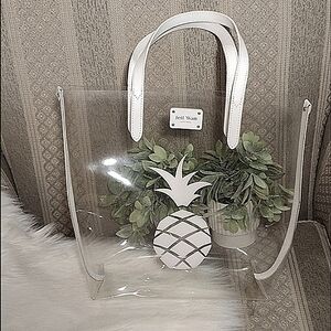 Jeff Wan Clear PVC Pineapple Bazar Tote With leather Trim & Silver tone logo and Hardware