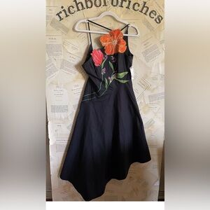 Anthropologie Yukiko Noritake Asymmetrical Floral Midi Dress Black Combo Orange Red Violet Green
