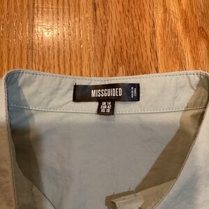 Size 10 sage nylon semi see through never worn missguided dress. The fabric is kind of like a crinkle fabric. It is comfortable.