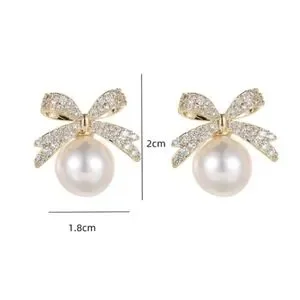 Anthropologie Classic Pearl Bow Gold Earrings