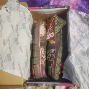 NWT Realtree Girl camouflage and pink slip on shoes. Memory foam. Women's Size 7.