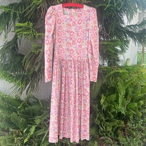 Vtg 80s Laura Ashley Floral Print Cotton Dress | Puff Sleeves | Drop Waist | S
