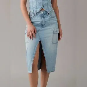 ❌SOLD❌New American Eagle (AE) Dreamy Drape High Waisted Cargo Denim Midi Skirt