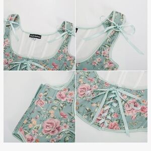 Customizable Fit with Adjustable Tie-Shoulders and Lace-Up Front: The tie-shoulders of this floral corset can be easily adjusted to provide the perfect fit for your unique shape. Whether you prefer a snug or relaxed fit. The lace-up front not only adds a touch of elegance to the bra's design but also allows for further customization. Adjustable ties so you can adjust the tightness to your preference.