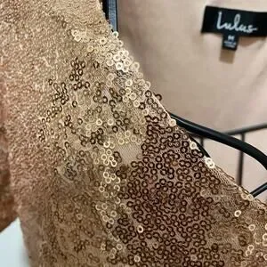 LULU’s Sequined Mini Dress SIZE MEDIUM Peach Short Sleeve V-Neck Cocktail Dress