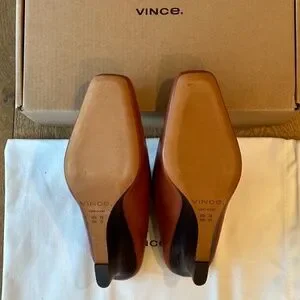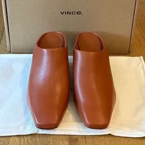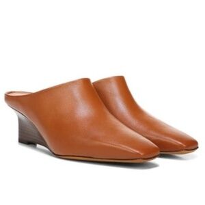 Vince Leather Benita Square Toe Slip On Clog Wedge Heel Pumps (Rust Amber)