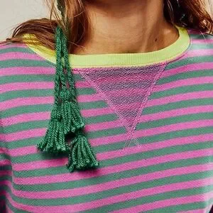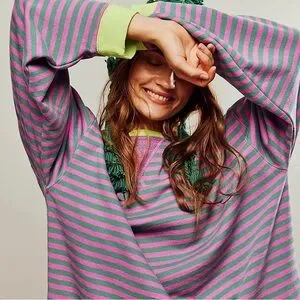 NWT Free People Classic Striped Oversized Crewneck Pink Combo Size Large