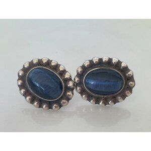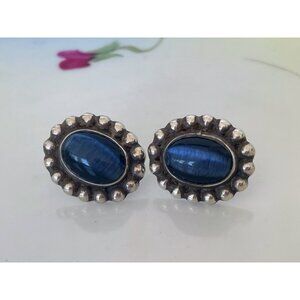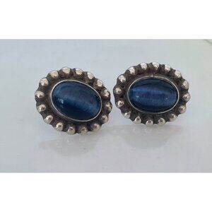 Vintage Mexican Sterling Silver Blue Cat Eye Earrings