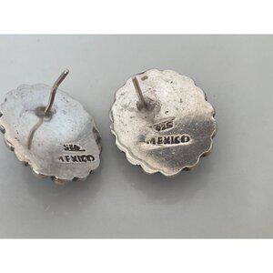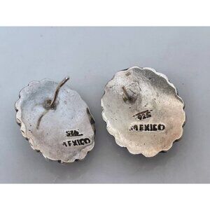 Stunning vintage Mexican sterling silver earrings, featuring exquisite blue cat eye stones. These earrings exemplify classic elegance with a unique twist, perfect for any jewelry enthusiast. These measure almost 1". They are missing the backs and the posts are slightly bent.