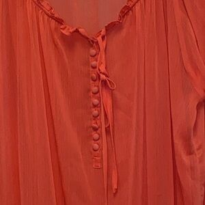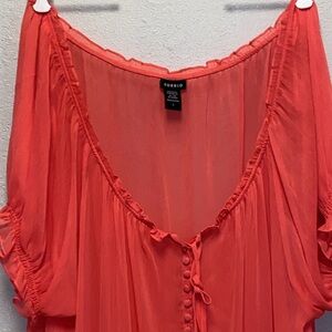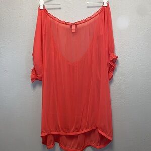 torrid Plus Size 4X Coral Sheer Boho Scoop Neck Casual Blouse 3282