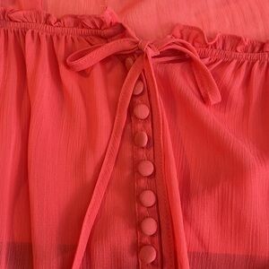 Effortlessly chic, featuring a coral hue, sheer fabric, boho style, and a scoop neck. Perfect for adding a touch of breezy elegance to your wardrobe.