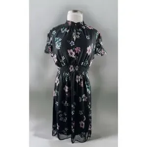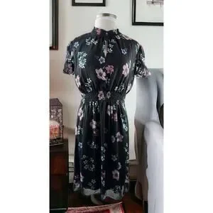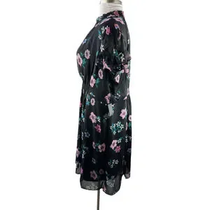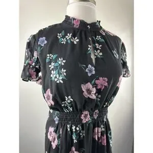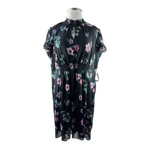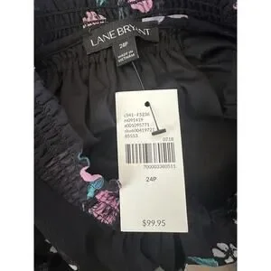 NWT Lane Bryant Floral Dress Black Smocked Keyhole Chiffon Plus Size 24 P