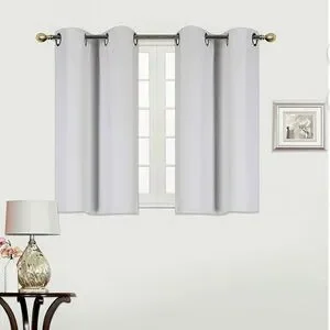 Like New. White panels with silver grommets. Thermal insulated for darkening or blackout. Each panel is 28”x 36”. Work great for blackout!