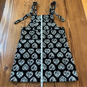 Lucy & Yak Mini Pini Corduroy Heart Print Dress has signature self tie straps, chest pocket, side pockets, side buttons, soft organic cotton mini-wale corduroy fabric with a bit of stretch. Very good condition, no stains or holes. Machine washable.