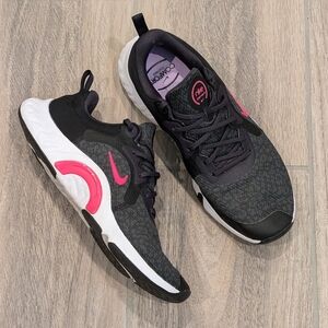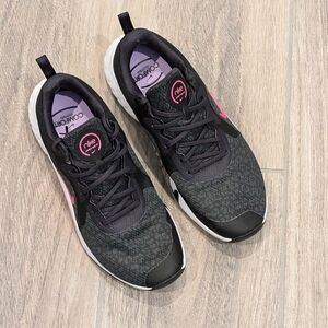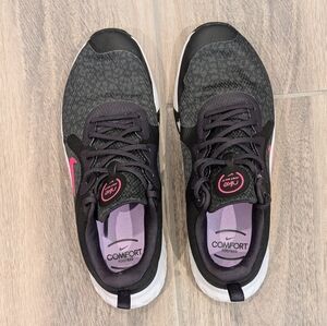 Ultra comfortable walking shoe! Black/deep purple color with light animal print design and hot pink accent. Only work a few times and in EUC.