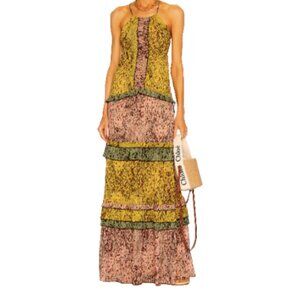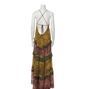Alexis Licett Halter Neck Tiered Maxi Open Back Strap Dress Color Amazonia Sz S