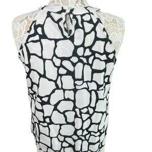 Allover print halter women pants suits. Sleeveless top wide&leg. Color white-black. CottonPolyester.Medium. New no tag.