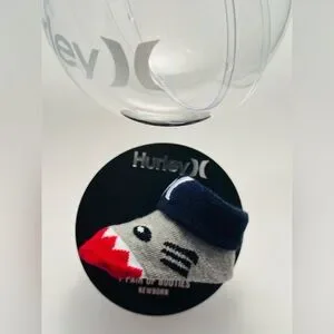 Hurley newborn 1 pair of booties in ornament shark design size 0-6M new in box with tags