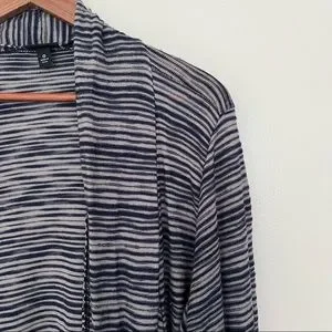 Torrid Womens Sweater Cardigan Knit Size Large Open Front Navy Stripes Waterfall