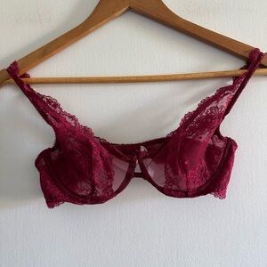 Victoria’s Secret Maroon Lace Underwire ‘Very Sexy’ Plunge Bra size 34B EUC