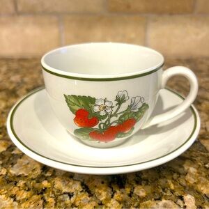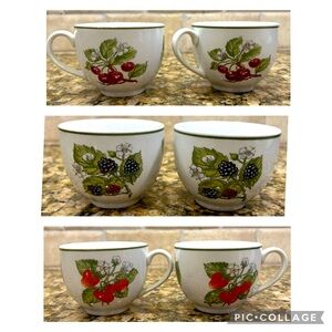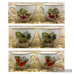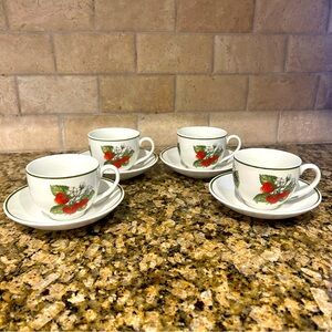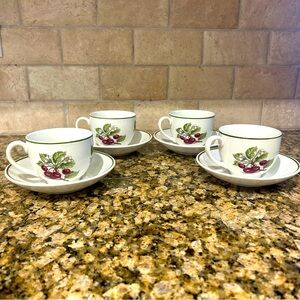 TIFFANY & CO. Staffordshire Gardens Made in England by Johnson Brothers (4 sets of cups & saucers - 8 pieces total). Watch video to see that the cups are all exactly alike with three different designs on each one - Used - Please zoom in on all pics to see any flaws/imperfections. Check my closet for other sets just like this one. I have matching plates available as well. Breakfast at Tiffany's - Tiffany and Company - Strawberries, Cherries, Raspberries, and Blackberries. High tea - Afternoon tea - Tea party - English tea