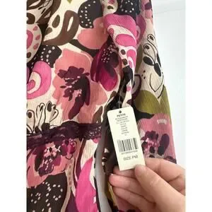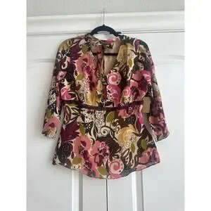 I.e. Petite Vintage 100% Silk Retro, 90's, Y2K Floral Blouse with Neck Tie