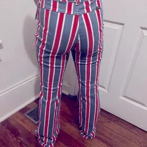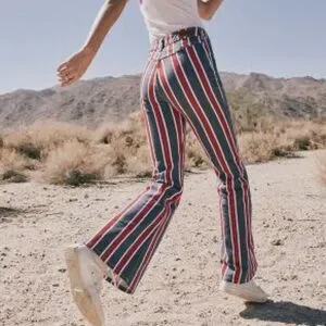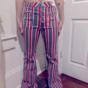 NWT Wrangler Women’s Americana High Rise Fierce Flare Jean. Color is Red, White, and Blue Stripe. Size 8/29 x 32. Perfect for the 4th of July!
