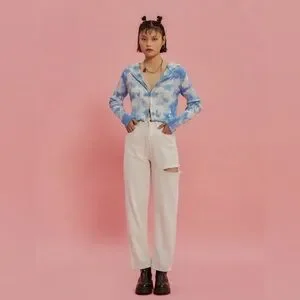 NWT Cider White Highwaist Straightleg Rip Jeans