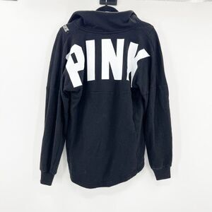 Pink Victoria's Secret 1/4 Zip Jacket Womens Size XS Black Drop Sleeve Oversized