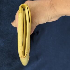This Vintage Miu Miu long wallet is bicolored yellow and gold, with gold hardware. EUC condition. there is an outside zipper section and 4 inside sections- the middle one has zipper. 8 credit card slots. There is some normal wear on corners and a spot of barely noticeable slight discoloration, but in my opinion does not detract from its beauty. the inside of the wallet is LIKE NEW. Zippers and single snap closure work perfectly. COA INCLUDED