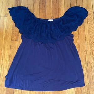 Maurices Embroidered Off the Shoulder Blouse Size 3XL Navy Blue