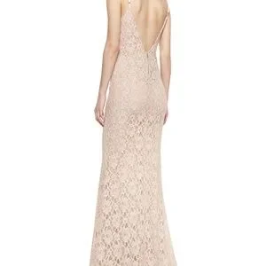 A lacy gown in earth-toned rose quartz by Alice + Olivia is a study in nostalgic romance. Alice + Olivia Laura lace dress with tonal underlay maxi gown.