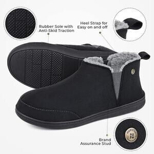 SOFT MICRO SUEDE UPPER & FAUX SHERPA LINING of our house shoes for men keep your feet toasty for all day wear and brings constant comfort. Hide away and take a break from stress in this chilly winter with these home boot footwear. Available in your choice of Black, Gray and Classic Tan that will match well with your loungewear, robes or any casual garment