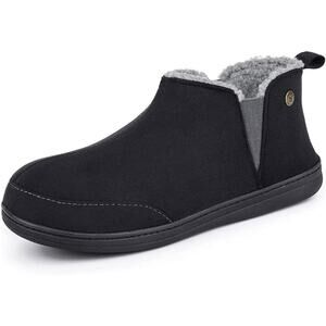 HomeTop Men's Soft Microsuede Sherpa Lined House Shoes with Elastic Dual Gores