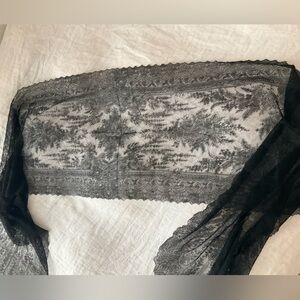 Antique Victorian large black lace stole wrap, antique textile, Mourning shawl