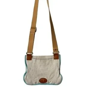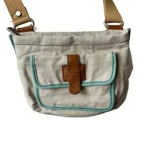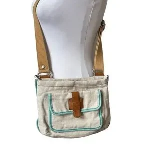 FOSSIL Crossbody Bag in Tan Canvas with Long Leather Straps