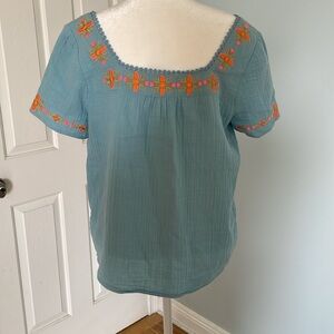 Boden boho embroidered top in heron blue size 8