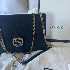Gucci interlocking, black pebbled leather which is brand new with tags, box and bag.