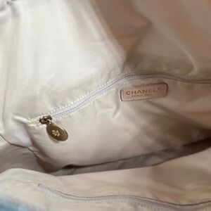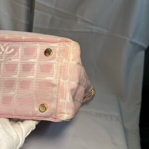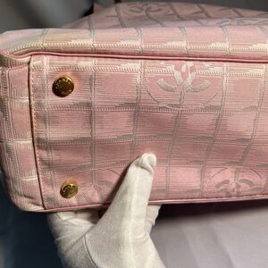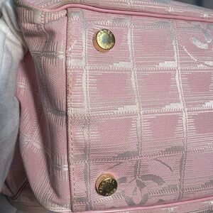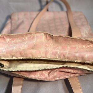 Very good condition authentic Chanel pink tote bag with zipper on the top. Holo intact. Very clean inside and out.